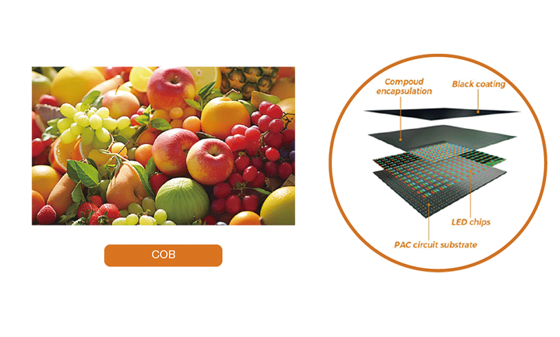 COB packaging achieves better video optical performance through chip level packaging,resulting in more comfortableand soft image qualityNo significant pixel graininess, more suitable for "closer range", "indoor ambient light", "longerdurationApplications under conditions such as long-term viewing.